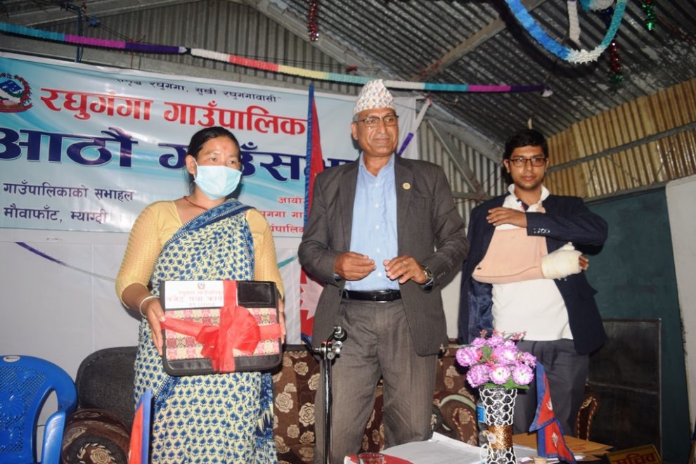 ११ असार, म्याग्दी । रघुगंगा गाउँपालिकाले स्वास्थ्य क्षेत्रलाई प्राथमिकता दिएर आगामी आर्थिक बर्ष २०७७/०७८ को नीति तथा कार्यक्रम र बजेट सार्वजनिक गरेको छ । बुधवार गाउँपालिकाको केन्द्र मौवाफाँटमा सम्पन्न आठौँ गाउँसभाले कोरोना भाइरसलाई नियन्त्रण गर्ने लगायतका स्वास्थ्यसंग सम्बन्धित क्षेत्रलाई प्राथमिकतामा राखेर नीति तथा कार्यक्रम र बजेट पारित गरेको हो । गाउँपालिकाका उपाध्यक्ष कमला तिलिजाले प्रस्तुत गरेको बजेट बक्तब्यमा कोरोना उपचार तथा रोकथाम कोषमा रु १ करोड बजेट विनियोजन गरिएको छ ।