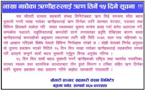 चौतारी सञ्चार सहकारीले कर्जा भुक्तानी नगर्नेको विवरण सार्वजनिक गर्ने (सुचना सहित)