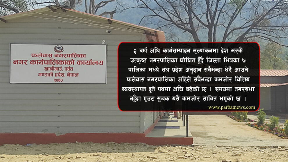 असार १० गते गर्नुपर्ने नगर सभा फलेवास नगरपालिकामा अहिलेसम्म पनि हुन सकिरहेको छैन् । नगर सभा गर्नुपर्ने प्रमुख दायित्व नगरपालिकाका पदाधिकारीहरुकै हो । बहुमत, अल्पमत, बेमेलका कारण नगरसभा समयमा हुन नसक्दा संघ प्रदेशको बजेटमा कटौती मात्र होइन, स्थानीय तहको कार्य सम्पादन मूल्यांकनको अंक पनि घट्छ । २ बर्ष अघि कार्यसम्पादन मूल्यांकनमा देश भरकै उत्कृष्ट नगरपालिका घोषित हुँदै जिल्ला भित्रका ७ पालिका मध्ये संघ प्रदेश अनुदान सवैभन्दा धेरै आउने फलेवास नगरपालिका अहिले सवैभन्दा कमजोर वित्तिय ब्यवस्थापन हुने पथमा अघि बढेको छ । समयमा नगरसभा नहुँदा एउट सुचक यसै कमजोर सावित भएको छ ।