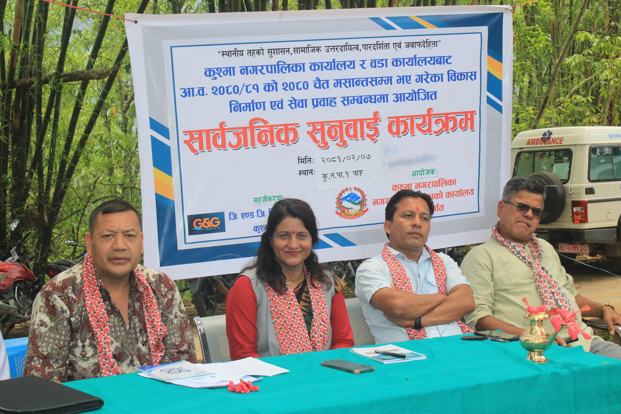 कार्यक्रममा कुश्मा नगरपालिकाका प्रमुख प्रशासकीय अधिकृत घनश्याम गौतम, शिक्षा शाखा प्रमुख विष्णुप्रसाद तिवारी, वडा अध्यक्ष खगराज पौडेल, राजश्व शाखा प्रमुख डिलकुमारी शर्मा, स्वास्थ्य शाखा प्रमुख यामप्रसाद शर्मा, लगायतले सहभागीहरुको प्रश्नको जवाफ दिएका थिए ।