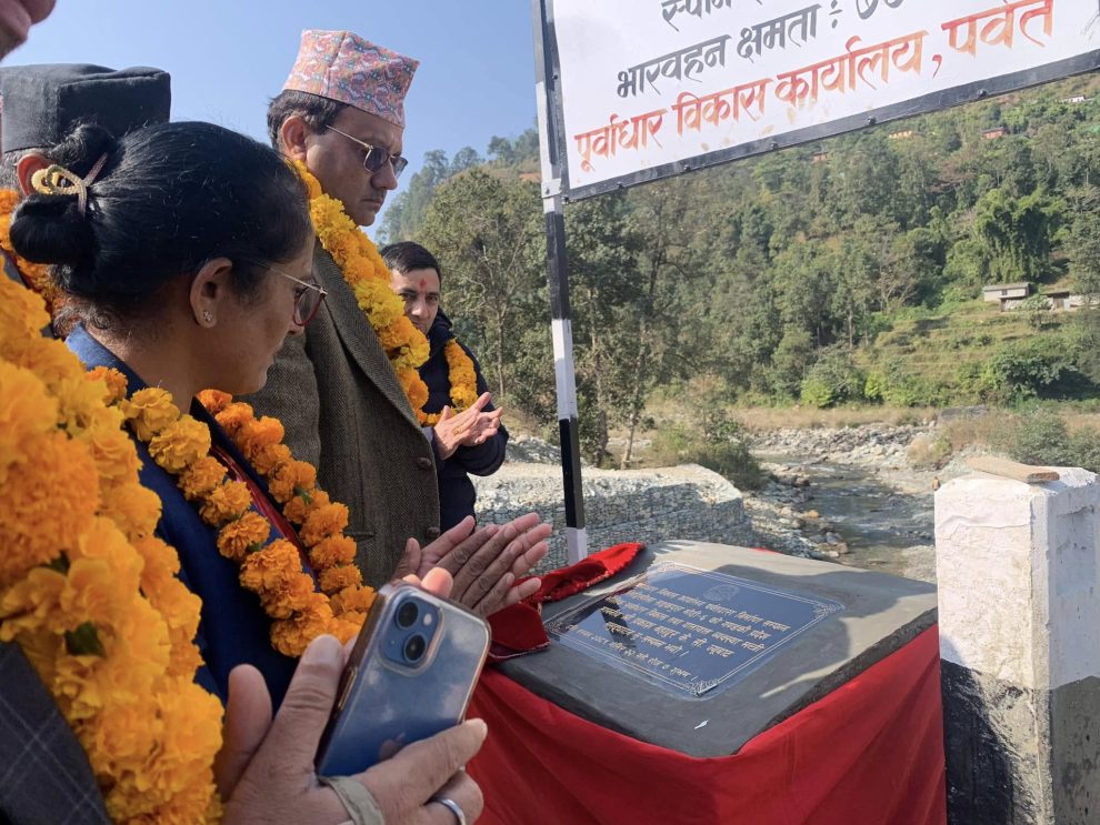 १८ महिनामा निर्माण कार्य सम्पन्न गर्ने गरी २०८० साल असोज २२ गते सम्झौता भएको पुल सात महिना अगावै गत भदौमै सम्पन्न भएको पुर्वाधार विकास कार्यालय पर्वतले जनाएको छ ।