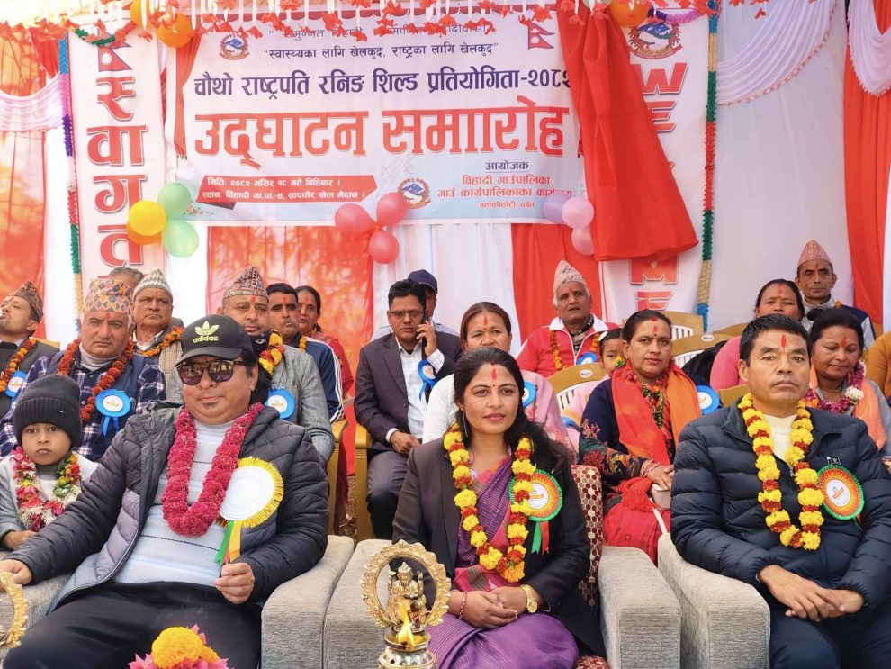 १९ मंसिर, पर्वत । जिल्लाको विहादी गाउँपालिकामा राष्ट्रपति रनिङ शिल्ड प्रतियोगीता शुरु भएको छ । गाउँपालिकाको सापखेल मैदानमा आयोजीत एक विशेष कार्यक्रमका वीच गाउँपालिका अध्यक्ष परविन गुरुङले खेलकुद प्रतियोगीताको शुभारम्भ गर्नुभएको थियो ।
