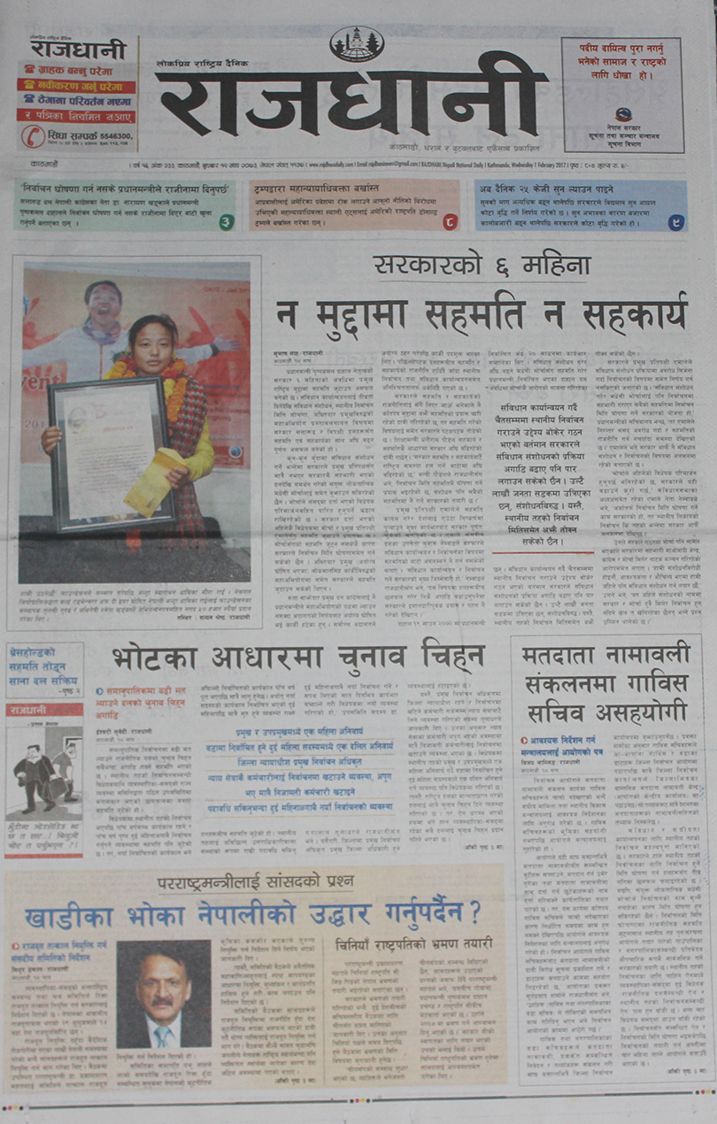 राजधानी दैनिकले सरकारको ६ महिना अवधिलाई समीक्षा गरेको समाचारलाई प्राथमिकताका साथ प्रकाशित गरेको छ ।
