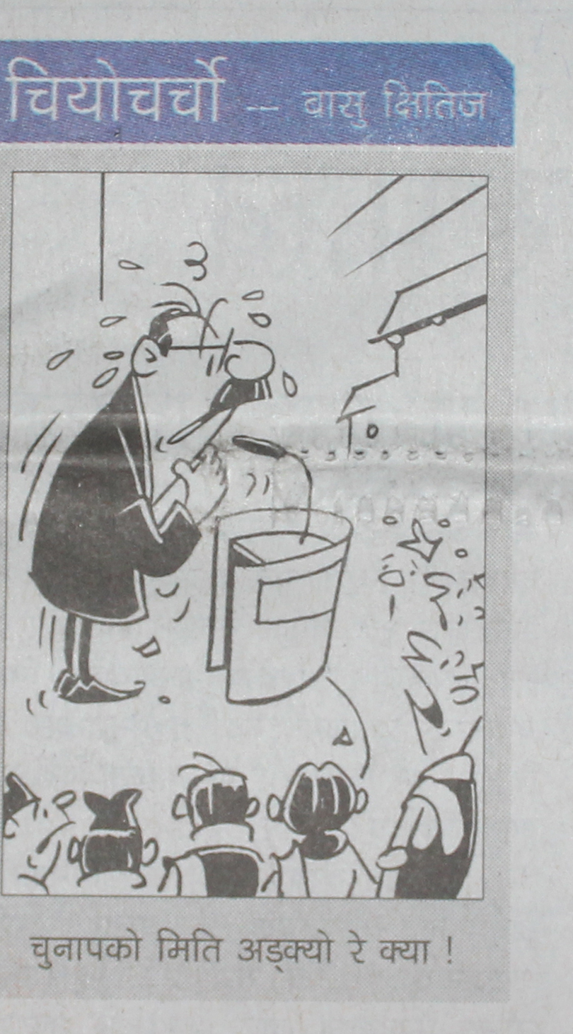 अन्नपूर्ण पोस्ट् दैनिकमा पनि प्रधानमन्त्रीलाई चुनावको मिति घोषणा गर्न परेको सकसलाई कार्टुनको विषय बनाएको छ ।