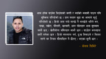 आफु पदमा हुनेबेलासम्म सिन्को नभाच्ने र उक्त पदमा जान पनि योग्य नहुने केहि लम्पटहरुले स्थानिय तहको संरचनामा आफुलाई बाहुबली ठान्ने तथा केन्द्रिय तहमा चाकडी, चाप्लुसी, तथा नातावादमा आफुलाई पुराका पुरा सर्मपण गर्नेहरुको बिरुद्ध साच्चिकै उभिन जरुरी भएको छ ।