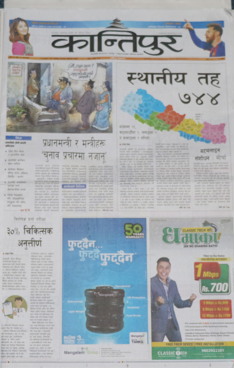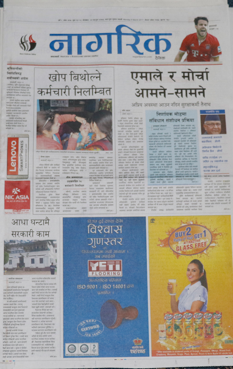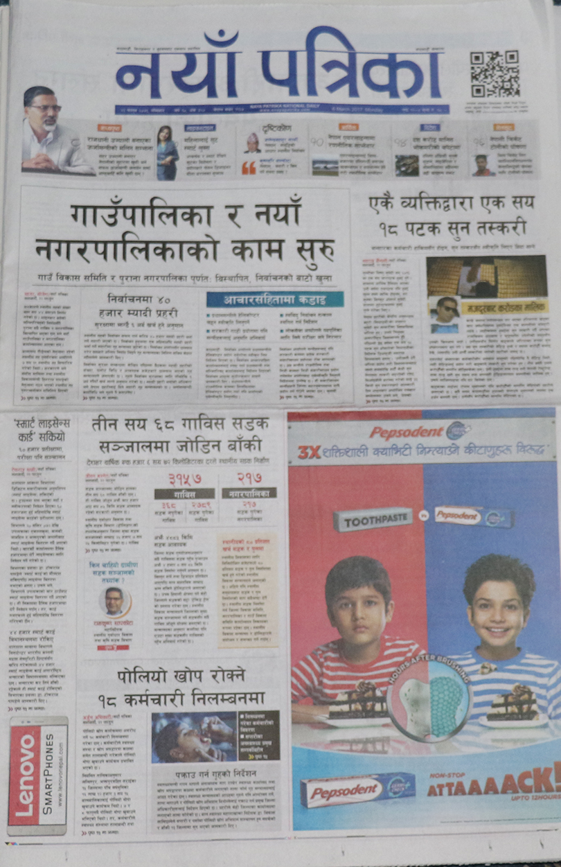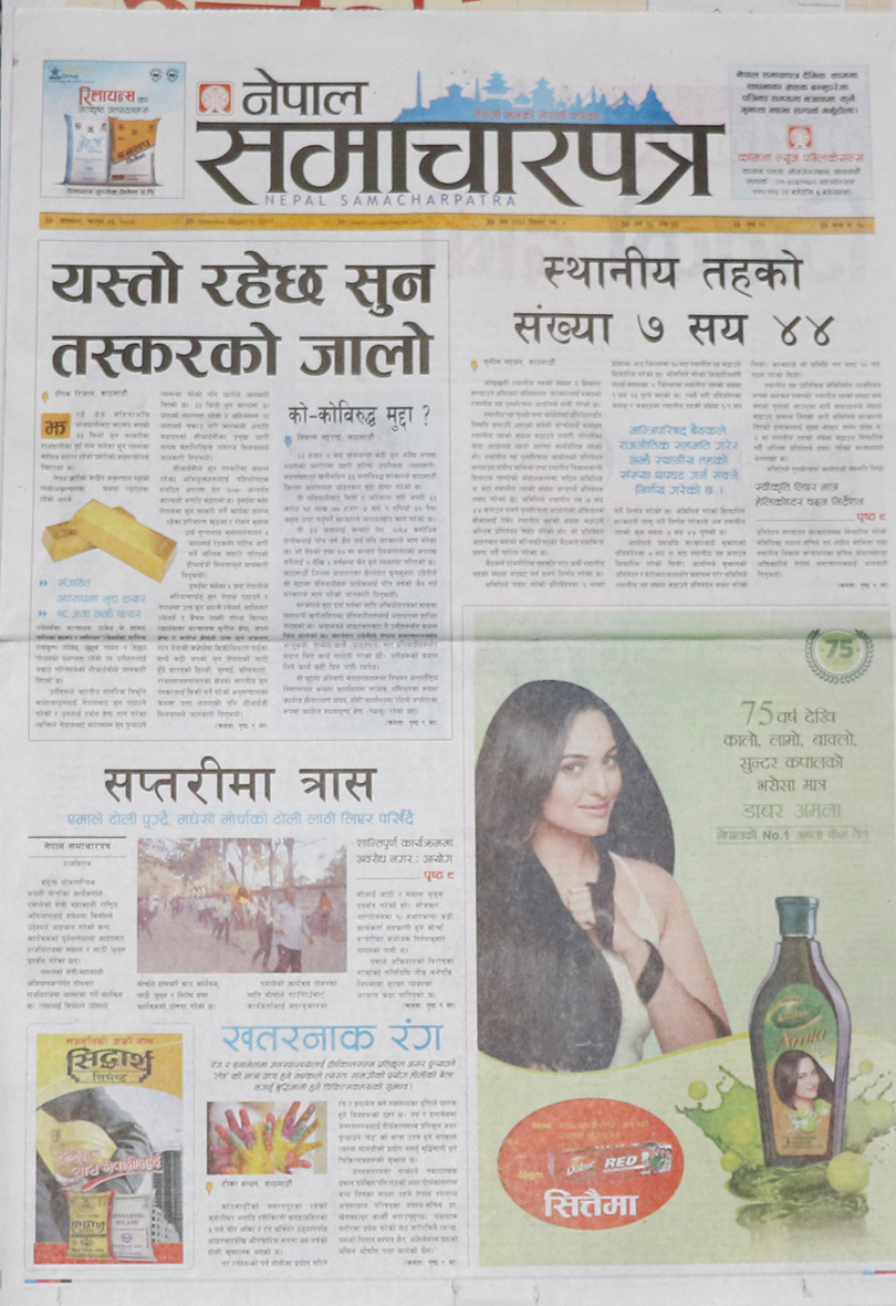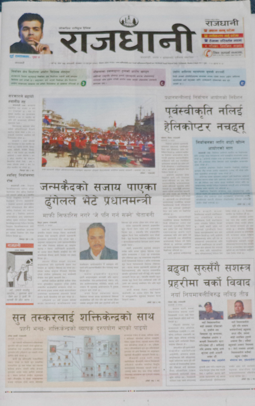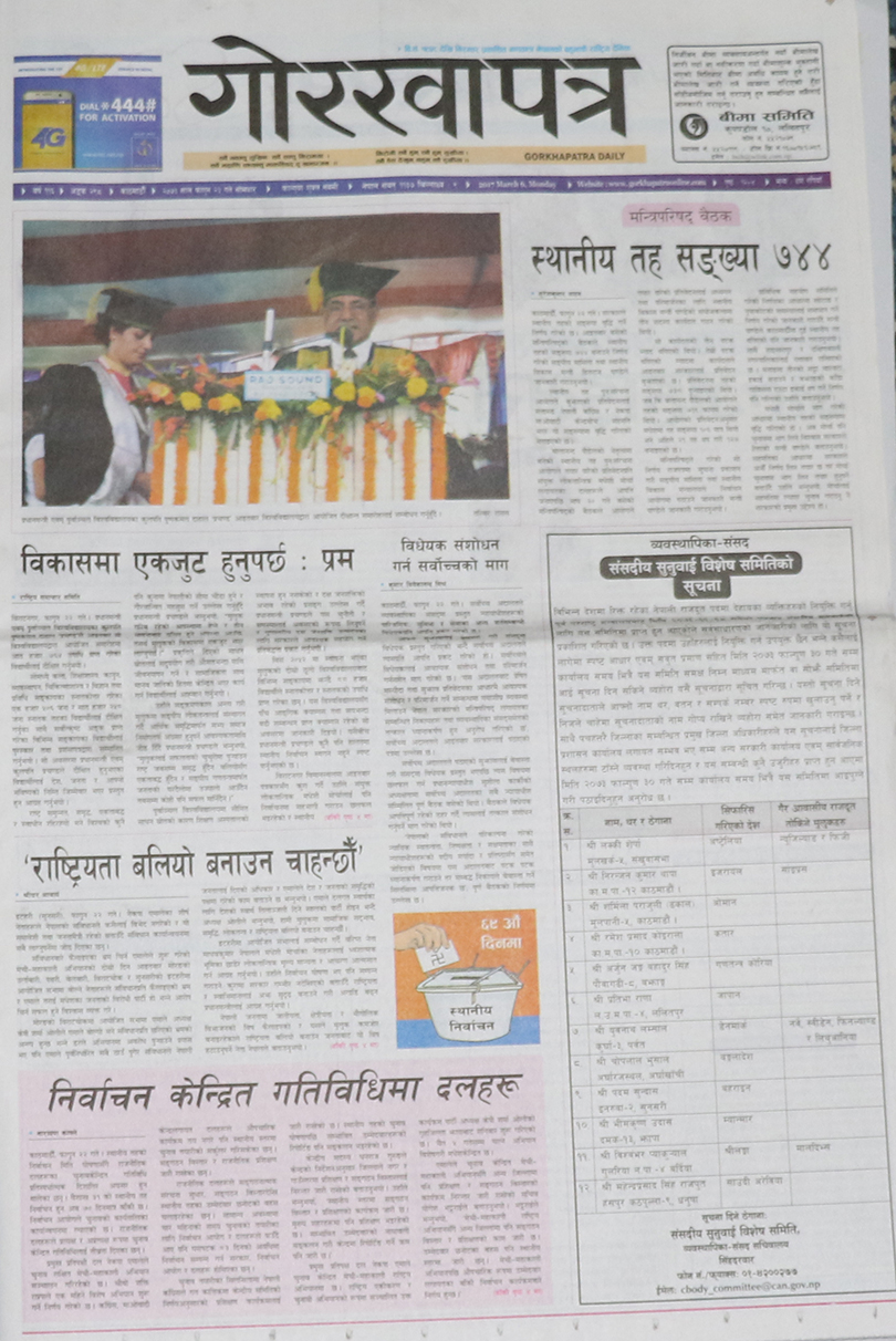 दलहरु निर्वाचन केन्द्रित गतिविधिमा लागेको समाचारलाई गोरखापत्र दैनिकले प्राथमिकताका साथ छापेको छ ।खोप विथोल्ने स्वस्थ्यकर्मी निलम्बित भएकोलाई मुख्य समाचार बनाएको नागरिक दैनिकले मधेसमा एमाले र मधेसी मोर्चा आमने-सामने भएकोलाई पनि उल्लेख गरेको छ । जन्मकैद पाएका माओवादी नेता बालकृष्ण ढुंगेलले प्रधानमन्त्रीसँग भेट गरेको समाचारलाई महत्व दिएको राजधानी दैनिकले बढुवासँगै सशस्त्र प्रहरीमा विवाद भएको समाचारलाई समेटेको छ ।
