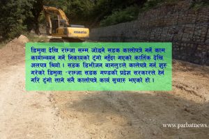 २० वैशाख, पर्वत । छ महिना पहिले देखि अलपत्र अबस्थामा रहेको पर्वतको डिमुवा देखि राम्जा चित्रे जोड्ने डिमुवा– राम्जा सडक कालोपत्रे गर्ने कार्य सुचारु भएको छ ।...