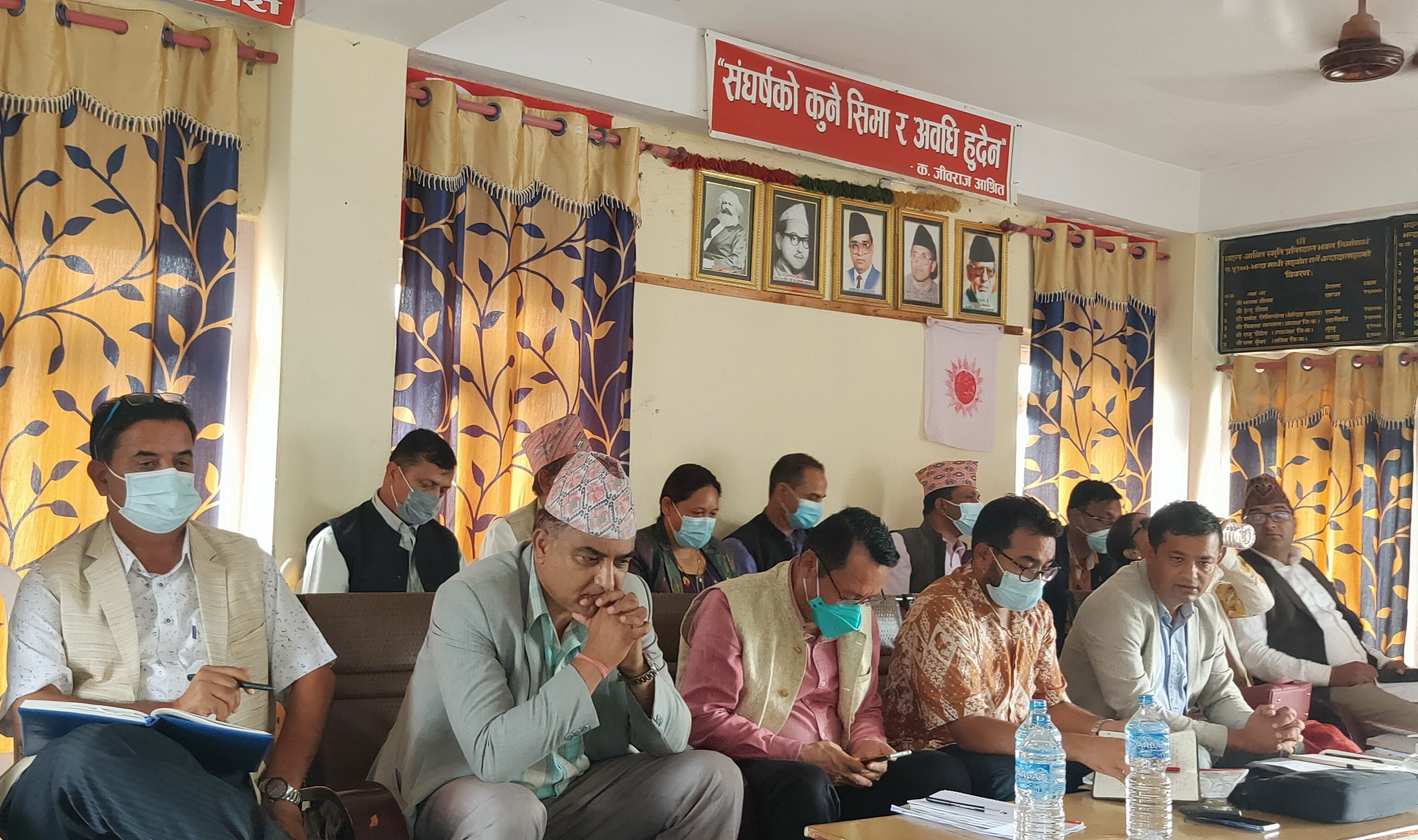 ३० भदौ, पर्वत । नेकपा एमाले पर्वतको जिल्ला कमिटि वैठक सम्पन्न भएको छ । नेकपा विभाजन भएर बनेको एमालेको पहिलो वैठक जिल्ला पाटी कार्यालय कुश्मामा सम्पन्न भएको हो...