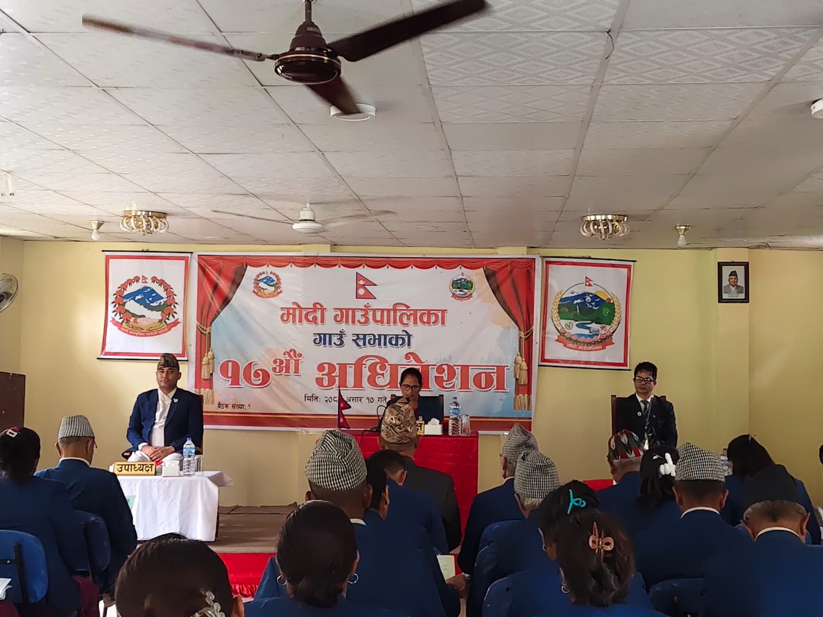 ११ असार, पर्वत । जिल्लाको मोदी गाउँपालिकाले आगामी आर्थिक बर्षको नीति कार्यक्रम तथा बजेट गाउँ सभामा प्रस्तुत गरेको छ । गाउँपालिकाको १७ औं अधिवेशनमा अध्यक्ष...